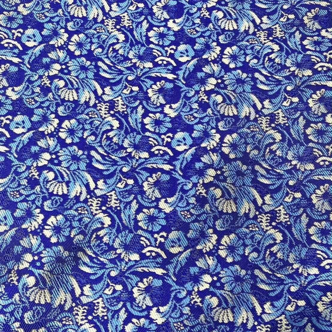 The chintz pattern woven in beautiful blue pure silk is both exotic and graceful.