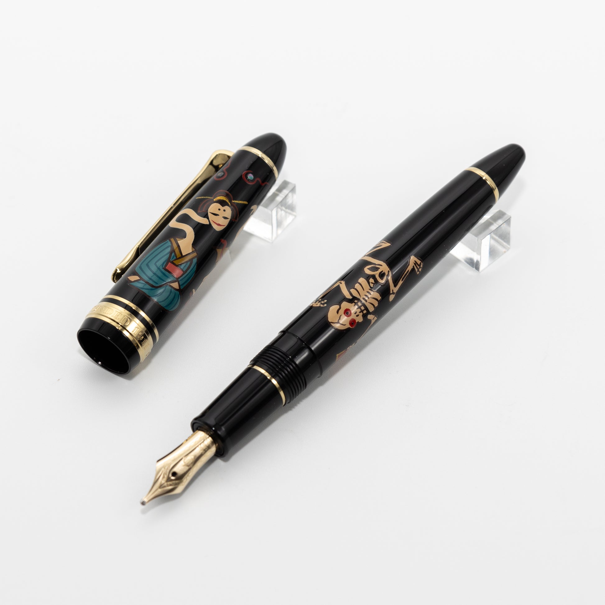 This is a pen covered in urushi paintings of Japanese folklore ghosts and spirits.