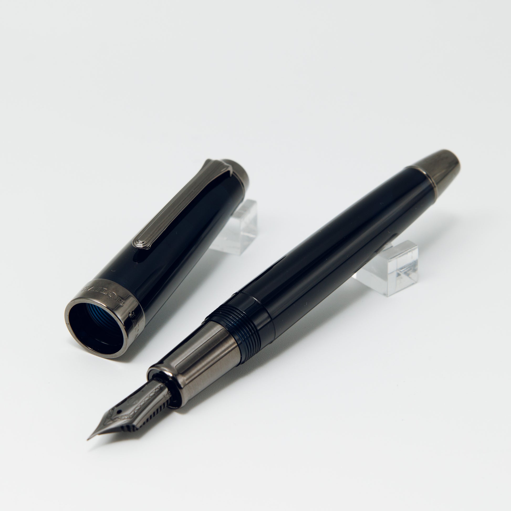 万年筆の軸が、深まる思考と一体となり「夜明け」をもたらすように、コーポレートカラーの「SAILOR BLUE 黎明」を深く濁りの無いクリア樹脂で表現しました。