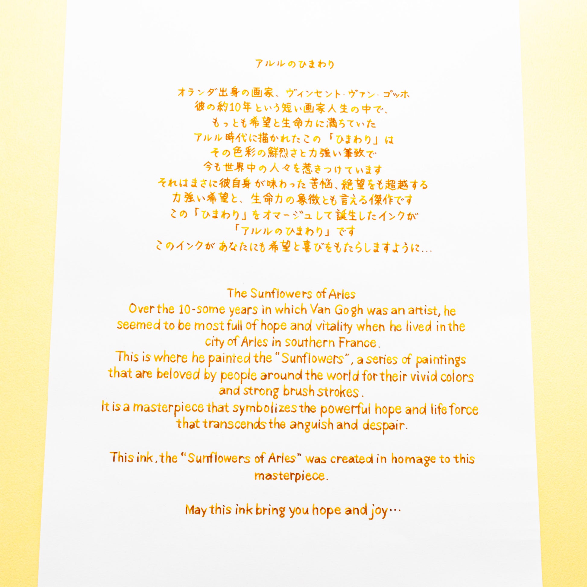 This ink, the “Sunflowers of Arles” was created in homage to this masterpiece.