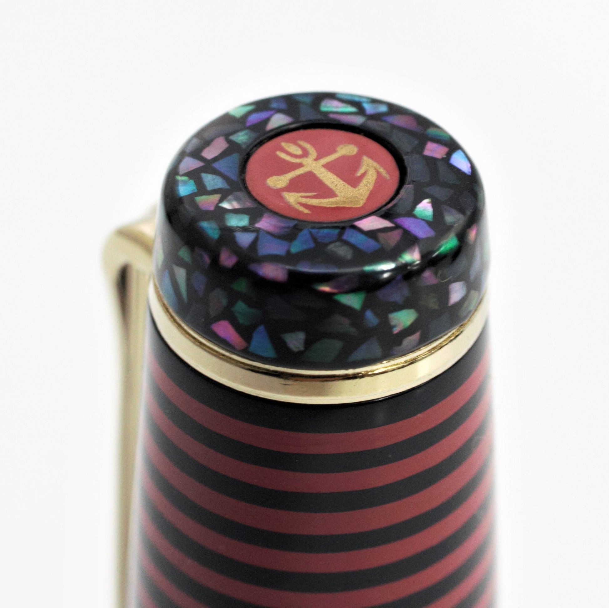 The border, cap top, and barrel end of the main body are finished with lacquer and mother-of-pearl in colors reminiscent of gemstones. Each gemstone has its own meaning, and this fountain pen has the power of the gemstones meaning embedded in it.